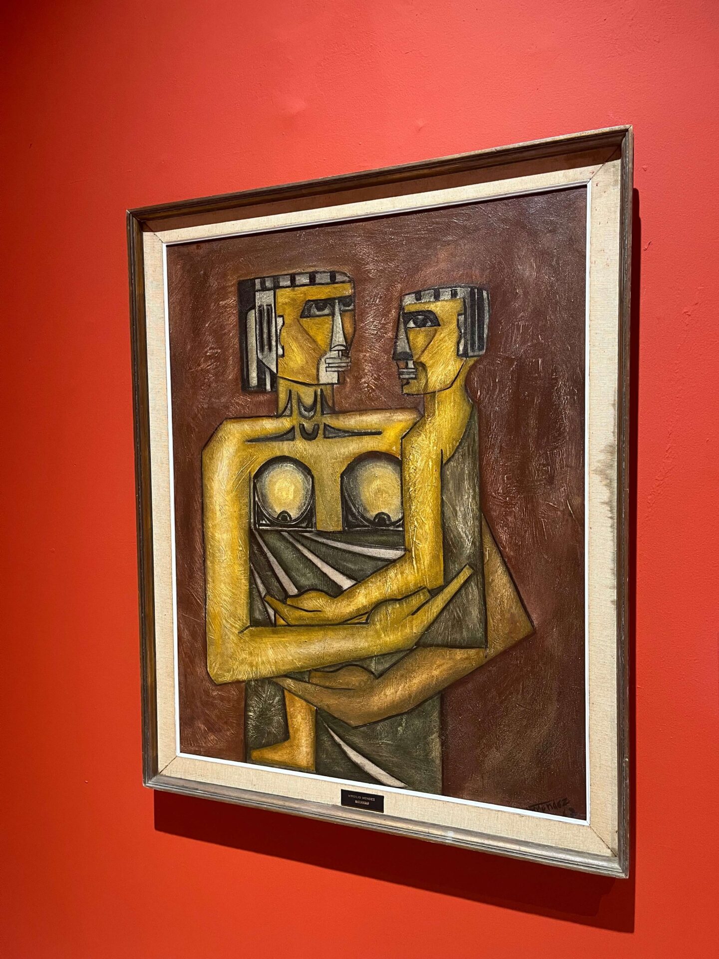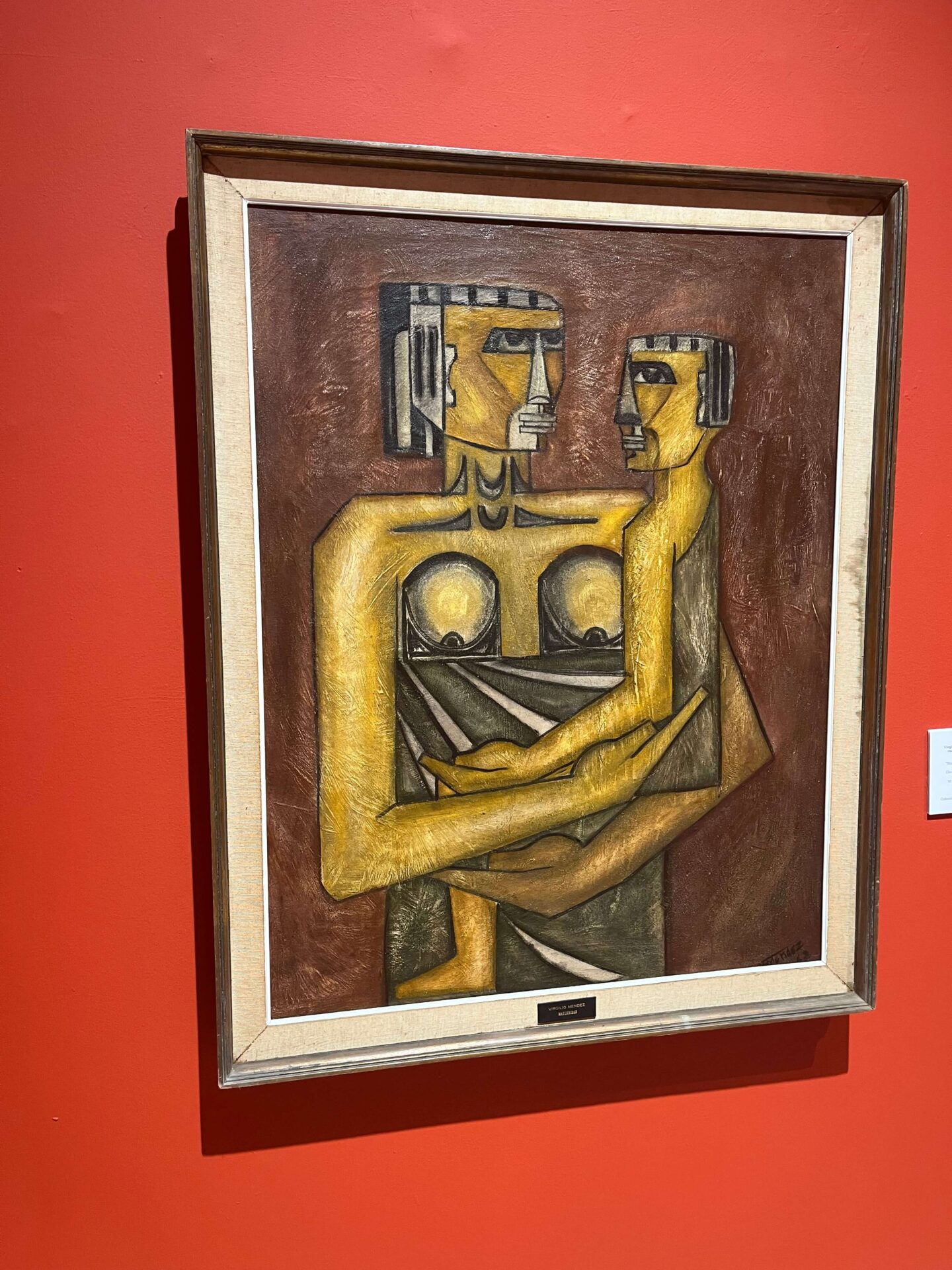 Celebrates the profound bond between parent and child. The angular forms and expressive faces of the figures evoke both strength and tenderness, capturing the universal experience of nurturing and protection. Through its bold colors and abstract style, the artwork invites viewers to reflect on the enduring comfort, love, and unity found in the embrace of motherhood.